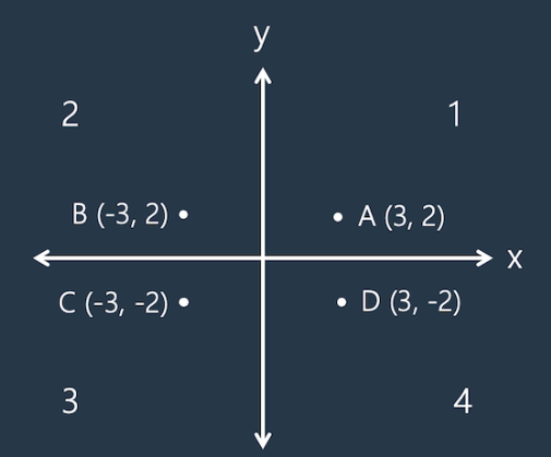 사분면은 한 평면을 x축과 y축을 기준으로 나눈 네 부분입니다. 사분면은 아래와 같이 1부터 4까지 번호를매깁니다.