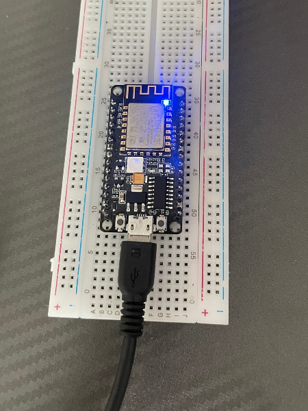 NodeMCU의 초록색과 파란색 불빛이 서로 번갈아가며 반짝인다.