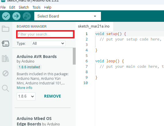 4. ArduinoIDE 왼쪽 상단에 Tools - Board - Boards Manager 선택