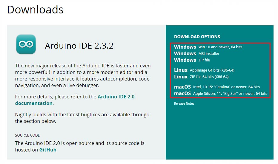 위 링크로 들어가서 ArduinoIDE를 다운로드한다.