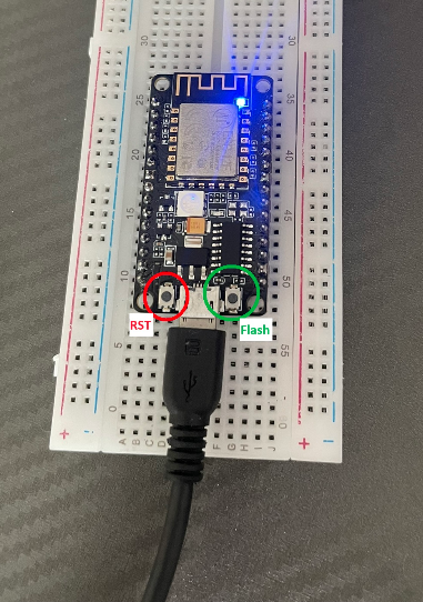 그럴 때는 Flash 버튼을 누르면서 RST 버튼을 누르고 RST 버튼에서 손을 뗀 다음 마지막으로 Flash 버튼에서 손을 뗀다.