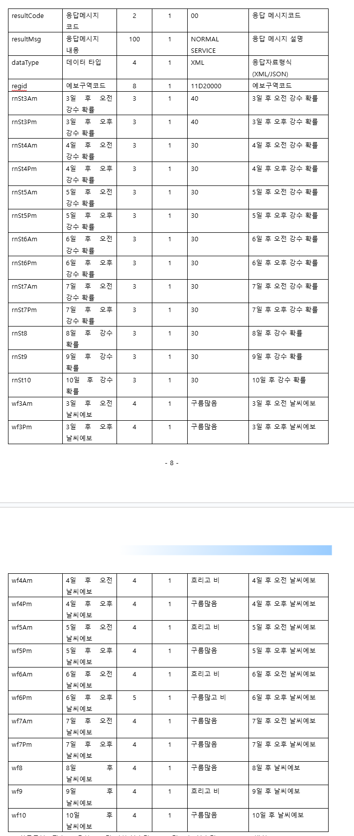 2024년 11월 28일 부로 단기예보, 중기예보에서 주는 API 의 범위가 달라졌다.