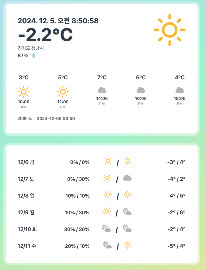 | The New 나만의 Weather 만들기 프로젝트 - (2) (1) | 2024.12.08 |