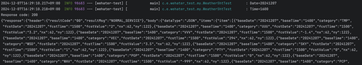 먼저 단기예보가 잘 오는지 확인을 위해 weather-test 패키지 아래에 sht_weather 라는 패키지를 만들고 weatherShtTest를 만든다.